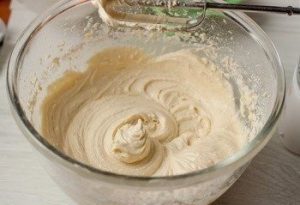1. Сливочное масло взбиваем с сахаром до получения кремообразной текстуры. Вбиваем яйца по одному, тщательно взбивая после каждого. Вводим ваниль и снова взбиваем.