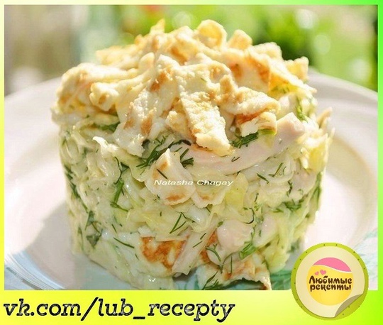 Капусту тонко нарезать и хорошо помять с солью, затем добавить вареное куриное мясо, разорванное на волокна, и мелко нарезанные блинчики. Заправить все майонезом. Для одного блинчика: 1 яйцо, 1 неполная…[...]