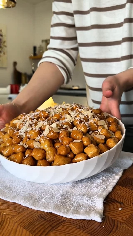 Составляющие: Для теста: - 5 яиц - 0,5 ч.л. соли - 0,5 ч.л. соды - 470-500 г муки Для сиропа: - 300 г мёда - 150 г сахара Создатель видео:…[...]