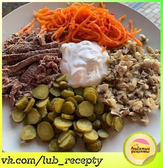 Ингредиенты: - Телятина около 400 г - Корнишоны примерно 200 г - Морковь по-корейски около 200 г - Лук - 1 шт. - Шампиньоны около 300 г - Сметана или…[...]