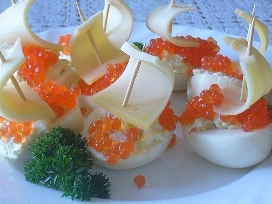 Ингредиенты: яйца сыр красная икра майонез соль, перец Приготовление: Эта замечательная закуска очень проста в приготовлении. Сначала отваривайте яйца, количество которых должно соответствовать количеству пар корабликов, которые вы хотите создать.…[...]
