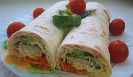 Ингредиенты: ● 1 лист лаваша ● 5 крабовых палочек ● 2 куриных яйца ● 100 г корейской моркови ● 1 зеленый болгарский перец ● 100 г сыра ● Майонез или…[...]