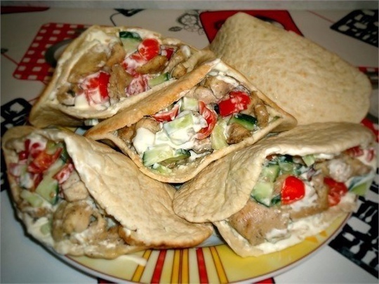 Ингредиенты: Куриное филе, помидоры, огурцы, зелень, кефир, сметана, чеснок, соль, перец Соус: 1:1 – кефир и сметана, либо майонез, соль, чеснок, зелень И самое важное – это пита, получается изумительно…[...]