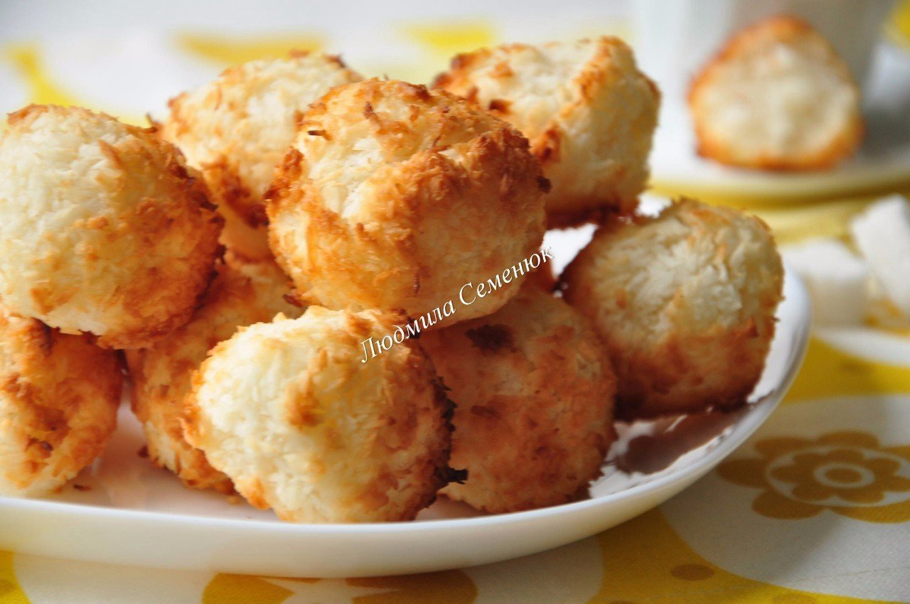 Кокосовая стружка - 250 г Сахар - 150 г Яйца куриные - 3 шт. 1. Яйца взбиваем с сахаром до образования воздушной пены. 2. Добавляем в яичную смесь кокосовую стружку.…[...]