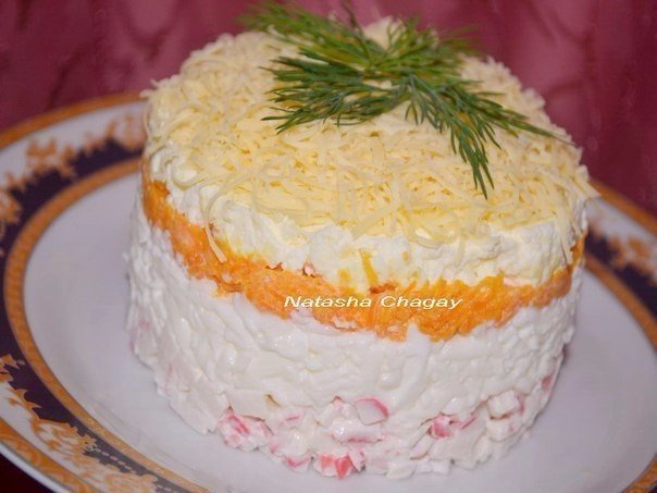 Ингредиенты: ● Крабовые палочки или мясо — 200 гр, ● вареные яйца — 6 шт, ● крупная вареная морковь — 1 шт, ● сыр — 70 гр, ● майонез или…[...]