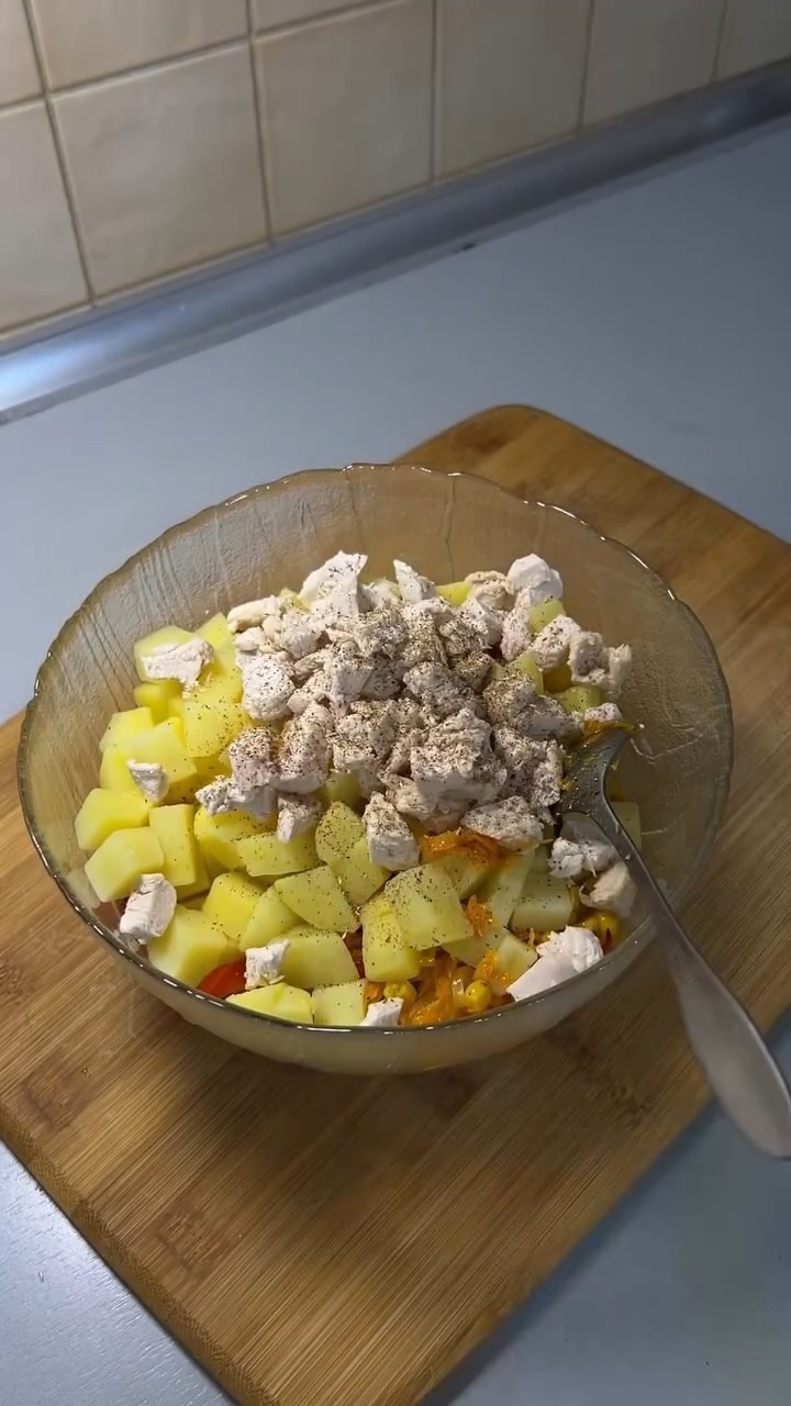 Компоненты: - Морковь - Лук репчатый - Картошка - Болгарский перец - Вареная куриная грудка - Консервированная кукуруза - Соль и черный перец - Майонез Создатель видео: artyr_umakhanov 📸[...]