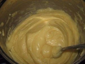2. Снимите кастрюлю с плиты и дайте тесту остыть. В остывшую массу по одному вводите яйца, каждый раз тщательно перемешивая до получения однородной текстуры. Готовое тесто должно быть блестящим и достаточно плотным, чтобы не растекаться на противне. На подготовленный смазанный маслом или устеленный пергаментом противень с помощью кондитерского мешка отсадите полоски длиной около 5-6 см и шириной 2-3 см, оставляя между ними расстояние в 3-5 см, так как они увеличатся в объеме. Выпекайте эклеры в течение первых 15-20 минут при температуре около 200 градусов до увеличения в объеме и зарумянивания.