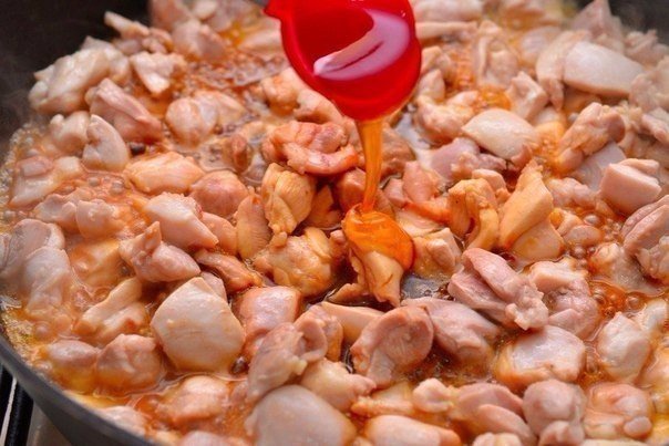 6. Затем добавьте и мед. Хорошо перемешайте и готовьте до полной готовности мяса.
