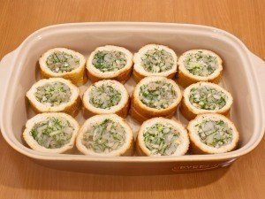 Форму смазать растительным маслом и уложить слой кусочков батона. В каждом куске сделать углубление, просто надавив на мякиш руками. Заполнить углубления смесью рыбы с луком. Поверх намазать майонезом и отправить в духовку.