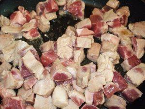 1. Нарежьте свинину кусочками среднего размера.