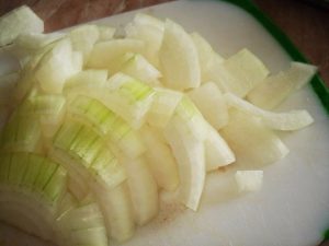 2. Лук нарежьте на средние части.