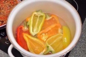 3. Обрабатываем помидорчики: сначала их нужно обдать кипятком, чтобы легче снять кожуру. Опускаем их в кипящую воду на минуту.