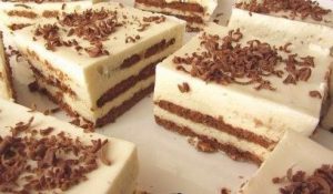 Украшаем торт натертым шоколадом, и вот он — десерт на ваш стол. У этого торта есть множество вариантов: можно взять белое печенье и добавить какао в крем, сверху посыпать сахарной пудрой, или же увеличить количество ингредиентов для высоты торта. Можно также добавить в слои бананы или киви. Такой простой способ приятно удивит вашу семью, особенно детей, легким и вкусным творожным тортиком.