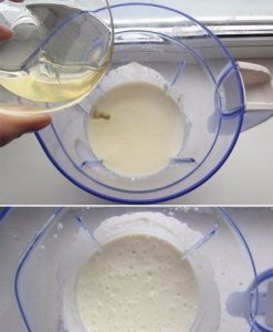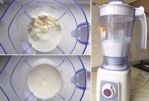 Далее в блендере соединяем творог, сметану и сахар, взбивая до получения однородного крема без комочков творога. Добавляем желатин и тщательно смешиваем. На этом этапе крем будет жидким — так и требуется. Формируем торт: укладываем печенье на дно формы, заливаем его кремом. Снова укладываем печенье, поливаем кремом вновь. Повторяем так трижды, чтобы получилось 3 коржа и 3 слоя крема.