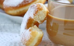 После этого тесто раскатать до толщины 1-1.5 см, вырезать из него кружки нужного размера с помощью стакана и сделать в каждом кружке еще небольшое отверстие. Накрыть их полотенцем или пленкой и оставить на 15-20 минут. В глубокой сковороде раскалить много растительного масла и на среднем огне обжарить пышки до золотистой корочки с обеих сторон. Затем выложить на бумажное полотенце, чтобы они отдохнули, и обильно посыпать сахарной пудрой. Подавайте горячими! Приятного аппетита!