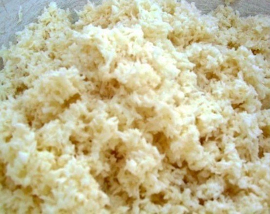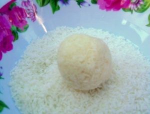 Немного поправь его, чтобы форма была аккуратной, и обваляй в кокосовой стружке.