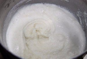 3. Когда молоко начнет закипать, осторожно всыпаем манку тонкой струйкой.
