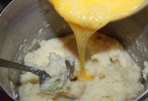 6. Вводим взбитое яйцо в подготовленную охлажденную массу. Важно, чтобы каша была холодной, иначе яйцо может свернуться.