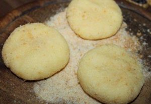 9. Формируем из манной массы небольшие шарики и обваливаем их в панировке.