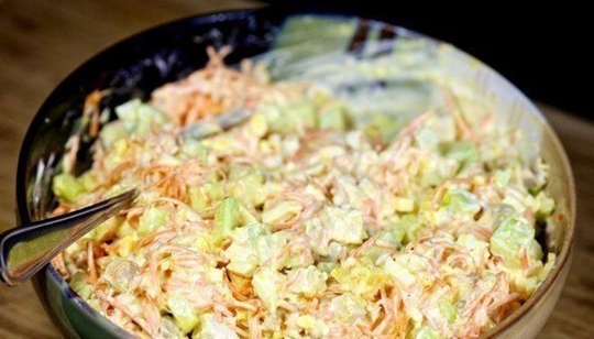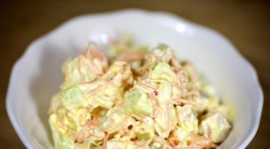 8. Тщательно перемешиваем куриный салат, пробуем на соль, оставляем на 30 минут для пропитывания, затем подаем к столу.
