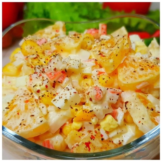 Смешать все ингредиенты, добавить соль и перец по вкусу. Тщательно перемешать и оставить в холодильнике перед подачей.