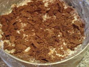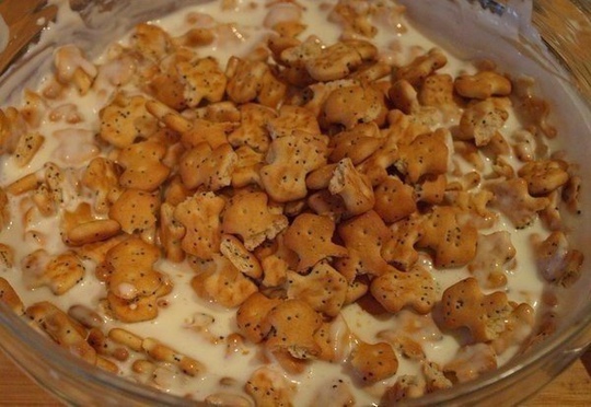 2. Поломайте крекер и добавьте его в сметану, тщательно перемешайте.