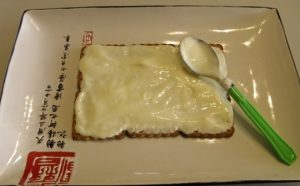 3. Теперь возьмите плоскую прямоугольную или квадратную тарелку и выложите на нее первый слой печенья, обильно намазав его кремом.
