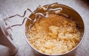 3. Если масса становится крошковатой, значит, масло недогрето. В этом случае следует налить горячую воду в раковину, поставить кастрюлю и продолжить мешать в ней тесто.